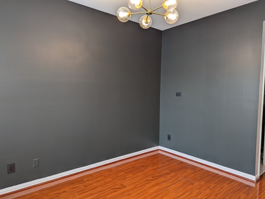 The walls in the space were wearing a paint job straight out of the last decade – and not in a good way. Not only was the beige color not exactly our cup of tea, but the paint job was looking pretty rough around the edges. We knew it was time for a refresh, and not just any old paint job would do. This one needed some serious TLC (read: wall repairs), so we decided to bring in the professionals. (I’m all for DIY but you gotta know your limits…and skim coating is one of them.)