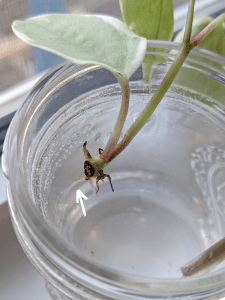 Note – if you don’t already have the plant, you can either buy the plant and cut off a piece per the above to start your second, or you can buy a cutting to propagate the first plant yourself. For my first peperomia, I bought a cutting from someone on Etsy and followed the steps below. Then I was able to propagate again from that one.
