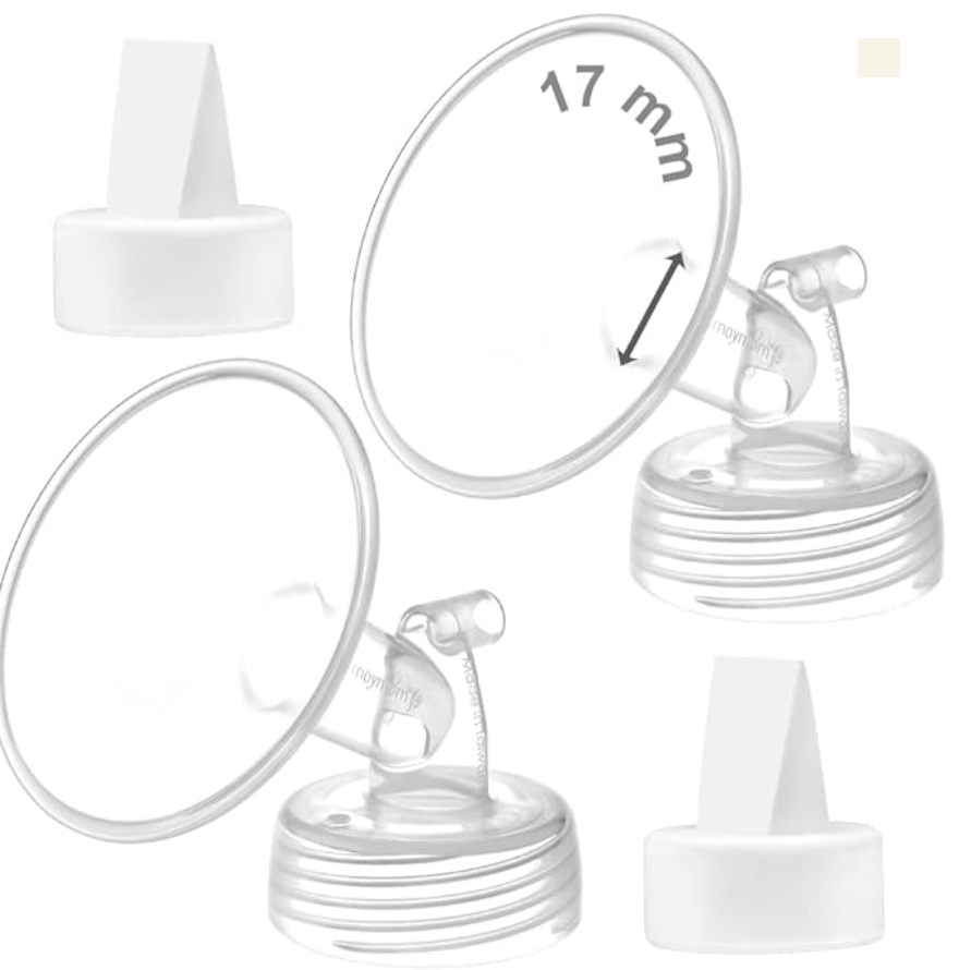 Appropriately-Sized Flanges: Most breast pumps come with 24mm and 28mm flanges, but not all women fit those sizes. It’s important to use appropriately-sized flanges for maximum comfort during pumping. The hospital at which I gave birth used Maymom brand which is what I linked above. You can get sized at a prenatal lactation consult or at the hospital after birth with the on-site lactation team.