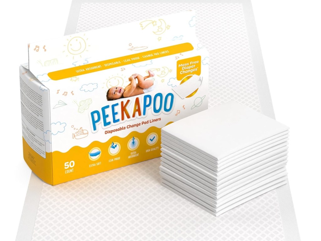Peekapoo Disposable Changing Pad Liners: Whether you have a fabric or solid changing pad, these changing pad liners will help keep things clean. Our baby has a lot of surprise pees and poos in the middle of her diaper changes, so being able to remove her from the mess and keep the mess contained is incredible. It’s also great to keep in your diaper bag for on-the-go changes. You can alternatively use puppy pee pads but the ones for animals are made to attract animals, and I wouldn’t want our cat going out of the litter box. Maybe it wouldn’t happen, but it’s not worth the risk!